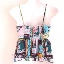 LilyBrownblueflowerpinkリリーブラウンフラワープリーツリボンキャミソールピンクブルー系青