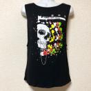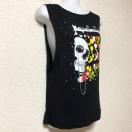 フロントにはスカルの斜め横顔とカラフルなペイントのプリント