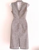 ★グレータイトドレスワンピーススーツクルーネックモックネックVカット開きホルターベルト灰色