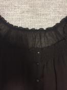 襟ぐり、袖口、裾付近に軽くゴム入り。