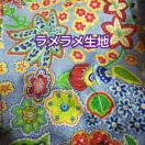★カラー/ラメ入水色地にカラフルなエスニック花柄