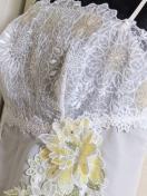 チャイナドレスからインスピレーションを得たスリップは、ケミカルレースをあしらった華やかなデザイン。ボディに寄りそうシルエットでからだのラインをより美しく魅せます。