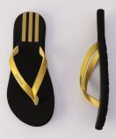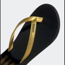 ソールに施したスリーストライプスや、ストラップのロゴがポイント