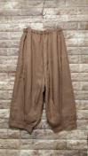 上質なリネン生地の風合いがgood!なフロントタック半端丈パンツです♪シナモンブラウン色もオシャレな色合いです♪ゆったりサルエル風ですが サルエルはちょっと...という方にも抵抗無く穿いていただけると思います♪裾のデザイン とっても可愛いです♪