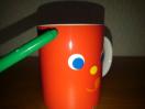 ★東ハト、キャラメルコーンでお馴染みのキャラメルコーンくんとアクアクララのキャラクターチャプリンの顔がそのままコップになった陶器製マグカップです。