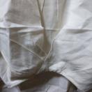 後ろ側が長めの、オーバーショルダーで、フロントの裾がタックが入ってるデザインのベエラブラウス。胸元のデザインも素敵です。着心地もバツグンです。