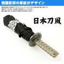 戦国武将の家紋がデザインに入っている 日本刀風の折り畳み傘です。