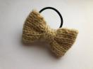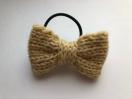 ウール100%の毛糸でリボンを編んでヘアゴムを作りました。