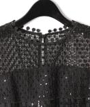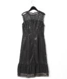 GRACECONTINENTALdiagramBlackブラックスパンコールメッシュレースドレスワンピース黒グレースコンチネンタルダイアグラムシースルーポンポンマーメイドフレアミディアム