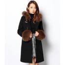 フード周り+カフスのボリュームファーで、リッチエレガントなコート。艶やかなビット金具が上品です。