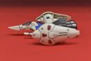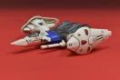 商品の状態はスミ入れと左右の可動バーニアをボールジョイントに変更しています。着地用車輪と台座も付属します。