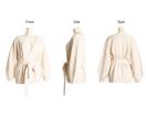 ベルトをしめてゆったりめにブラウジングしやや抜き襟気味で羽織ると今時な着こなしに。