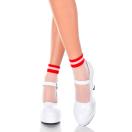 ストッキング素材に近い白地の生地に、ラインが入ったスポーティなアンクルソックスです。こちらは赤のストライプが入ったタイプです。