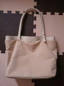 サイズ(平置き)◆タテ(持ち手含まず)約27p×ヨコ(外ポケット口部分)約37p×マチ約13p