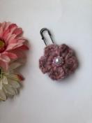 ふわふわふんわりモヘア 入りの毛糸2本取りでお花を編んで、ストールピンを作りました。
