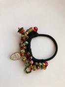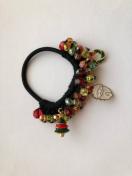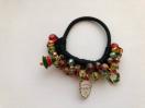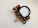 キラキラビーズとクリスマスチャームを盛り盛り編み込んで、ヘアゴムを作りました。