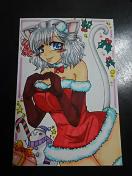ハガキサイズのスケブ用紙に描きました「オリジナル★猫耳サンタガール」です。