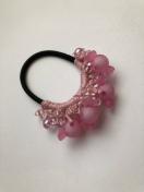 キラキラビーズとキャンディーを盛り盛り編み込んで、ヘアゴムを作りました。