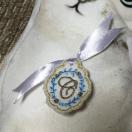 ロゴ刺繍ワッペンとリボンが縫い付けられています