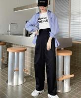 新品パンツ ブラック ワイドパンツ 美脚 着痩せ効果 コットン 綿