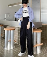 新品パンツ ブラック ワイドパンツ 美脚 着痩せ効果 コットン 綿
