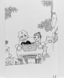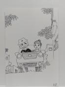 オリジナルイラスト手描きイラスト ドライブ 自作ハンドメイド車絵原画アートインテリアモノクロ
