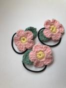 コットンミックス糸でお花を編んで、ヘアゴムを作りました。