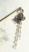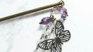 透かしの蝶々に淡い紫のビーズをあわせました。