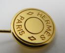 ★エルメスのロゴが刻印されたセリエデザインのエレガントなピンブローチ、シンプルなデザインですので、マフラーやストールなど幅広い素材に合わせやすく、カラーは光沢のあるゴールドです★