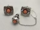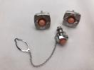 B081 ★ 本サンゴ 珊瑚 カフスボタン タイピン セット 箱付き