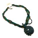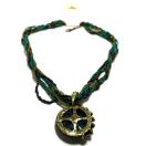 ターコイズのようなメインモチーフに緑カラーのジルコニアが輝いてる美しいトライバルテイストのネックレスです★