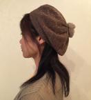 薄手で柔らかいニットのベレー帽。ドットにも見える点々は良く見ると
