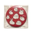 アニメ風な白うさぎが8匹描かれた赤ぃ缶バッジです。