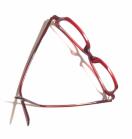 少しつり目でcoolな印象の横長タイプ。透明な暗い赤フレーム。