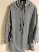 ウール混み裏起毛スエット素材大きめパーカー付きロング丈トップス