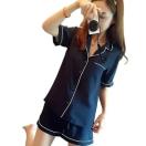 レディース パジャマ シルク 半袖 前開き 上下セット かわいい 無地 純色 エレガント ソフト 夏 絹 女性 用 ルームウェア 部屋着 便利服