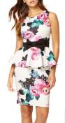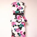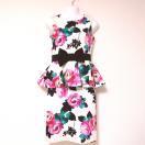 インポートローズフラワーリボンペプラムタイトドレスワンピースパーティーピンクブラックホワイトダイバー素材ボンディングプルオーバー白黒りぼん花柄ドロシーパーキンスflowerWhiteBlackpinkDOROTHYPERKINS