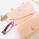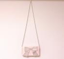 サテンベビーピンクラインストーンキラキラリボンクラッチバッグシルバーチェーンショルダーバッグフラップバックbaganap2way