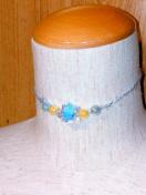 紐に伸縮性はありませんので、少しブカブカ目に余裕のあるサイズで付けてあげてください。写真の猫は六キロのオスで、首周りの長さは29〜30cmで作りました。写真のネコの首輪は試作品だったので、ビーズの数が違います。改良して、ビーズを増やしたので、もっと可愛く仕上がりましたよ