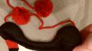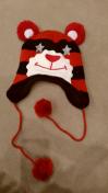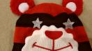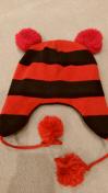 PINK LATTE ニット帽 赤黒ボーダーベア星ハート柄耳宛てボンボ