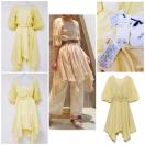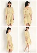 Lilybrownシアーイレギュラーヘムワンピース黄色イエローyellowリリーブラウンアシンメトリーシースルーフレアパフスリーブミディアムミニカシュクールボートネックライム