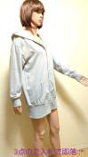 [商品情報] 襟元からフードの繋ぎが綺麗なロングパーカーです。ブランド:SHINY RIPPLE 色:グレー 表記サイズ:L(大きめサイズです) 平置き⇒肩幅54cm、胸元幅52cm、着丈75cm、袖丈53cm、裾幅45p 素材:ポリエステル/コットン ストレッチ:あり 裏生地:なし 他:着用少なく綺麗です。
