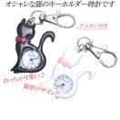 新品 猫 キーホルダー 時計 フック付き ピンク