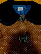 コーデュロイ素材のコートにベロア素材の襟がついてます襟元もさりげなくフリルになってて高級感あるしっかりした作りになってます。