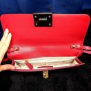 未使用でしたが、金具部分に自宅保管中についてしまった小傷が僅かにございます。お写真でご確認の上、ご納得の上でご購入お願いいたします。傷が少しでも気になる方はご購入をお控えください。お写真ですと、フラッシュや、携帯の自動補正がかかって明るく見えますが、暗めの落ち着いたレッドカラーになります。予めご理解お願いいたします。