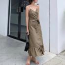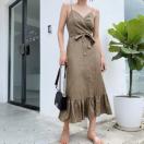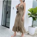 birthdaybashbbバースデーバッシュバースデイバッシュカシュクールストラップドレスカーキベージュリボンベルトフレアマーメイド巻きスカートラップスカートワンピース