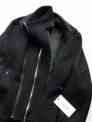 前の内身頃に取り外し可能なカシミヤ混リブ地を追加しレイヤードデザインに仕上げています。
