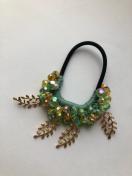 キラキラビーズとリーフを盛り盛り編み込んでヘアゴムを作りました。