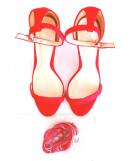 赤レースアップアンクルストラップベルトサンダルカーフスキンティティベイト2waytitivatered