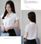 リボンボウタイ真っ白シャツブラウスりぼん半袖ホワイト2wayWhite